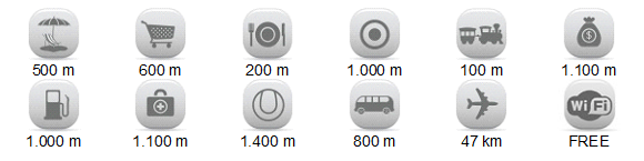 Air condition, Living room, Terrace, Parking space, Sat / TV, Wi-Fi Internet access, Coffee Machine, Refrigerator, Stove electric / gas, Grill, Pets allowed